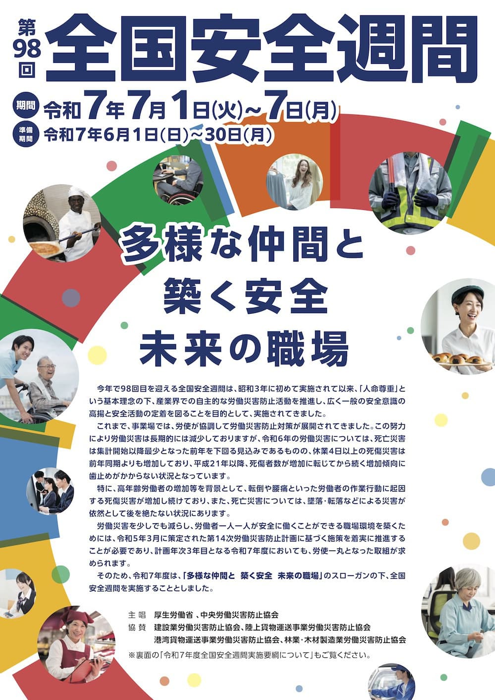 令和7年度のスローガンは「多様な仲間と 築く安全 未来の職場」。